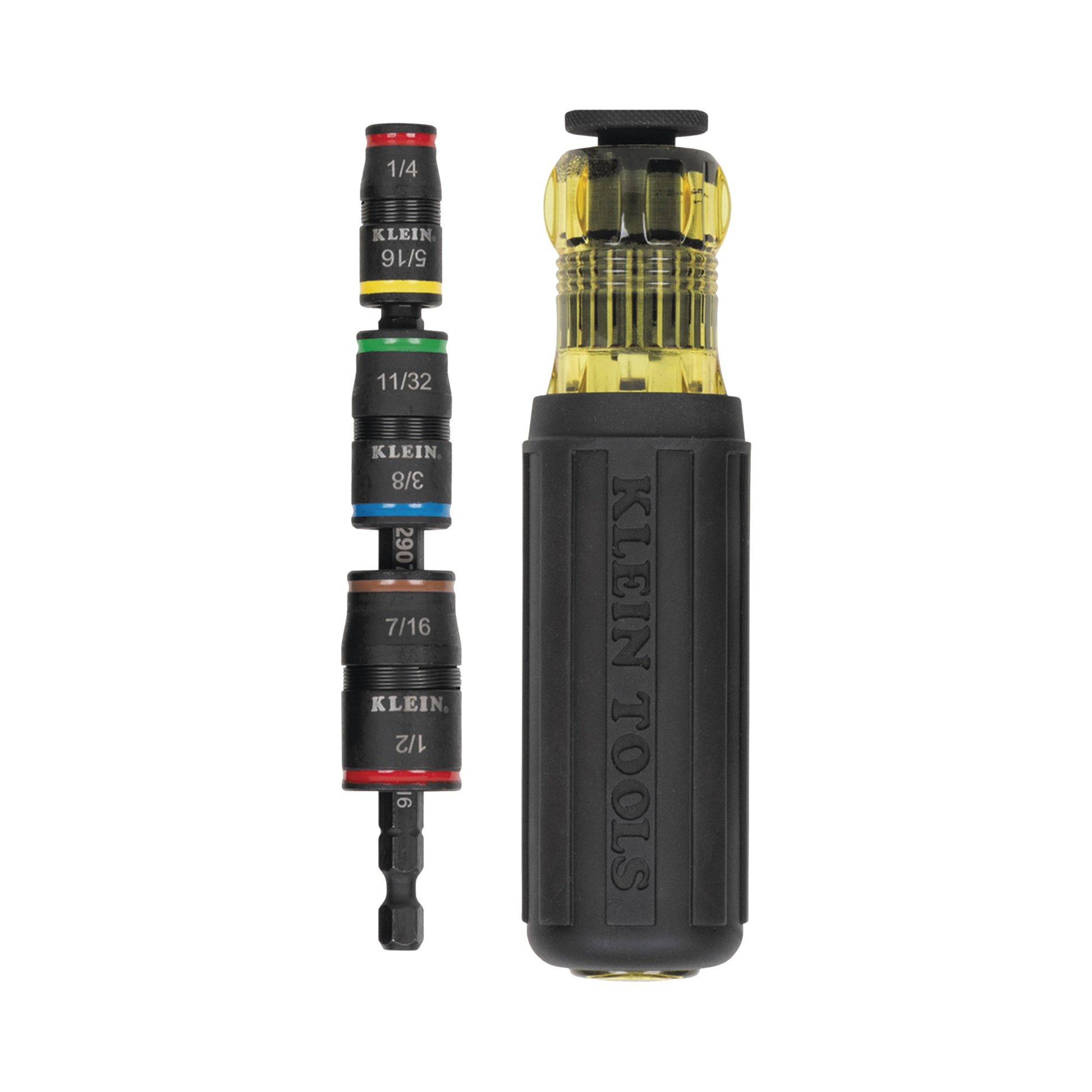 - Incluye desarmadores de caja de 1/4'', 5/16'', 11/32'', 3/8'', 7/16'' y 1/2''