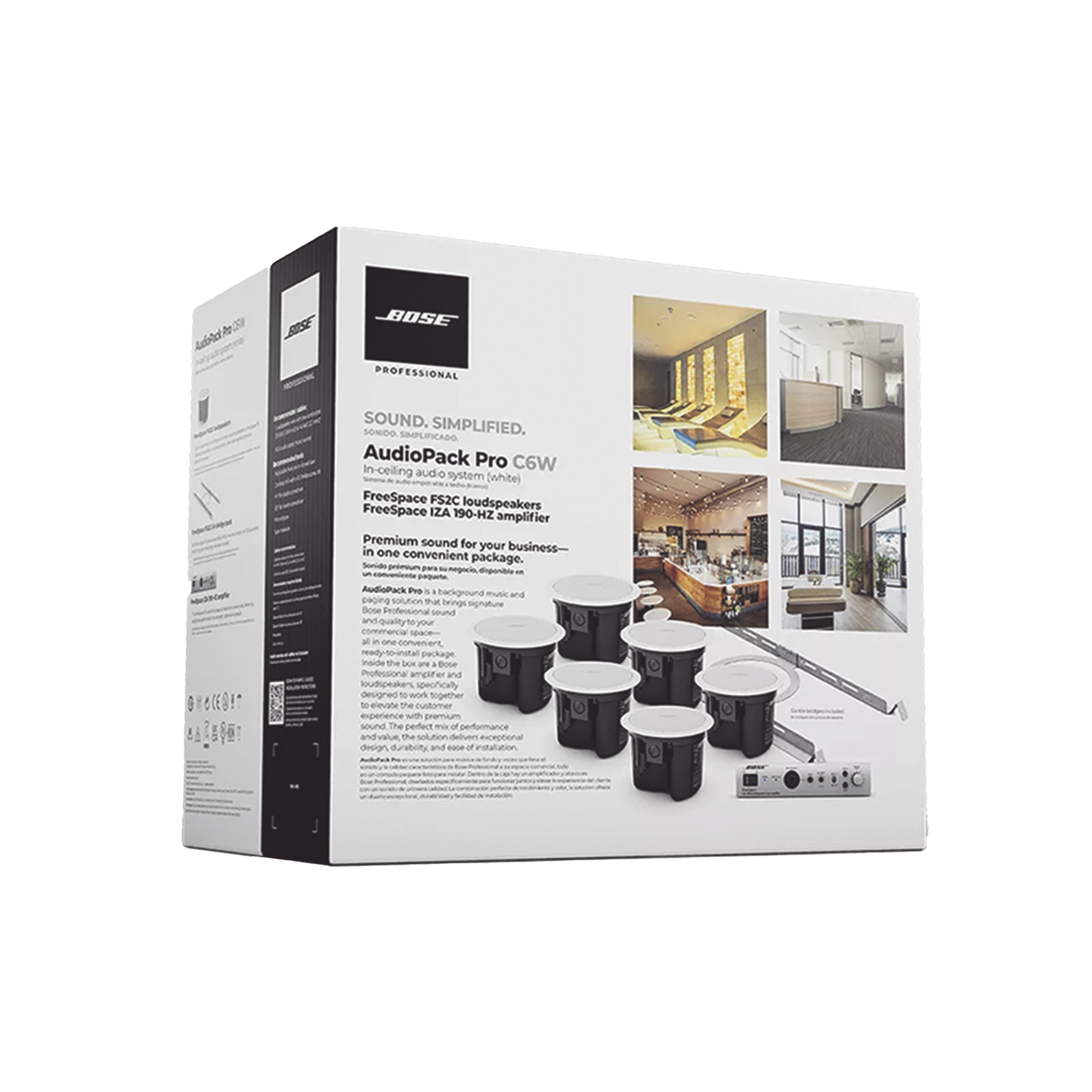 AudioPack Pro es una solución para música ambiental y voceo que brinda el sonido insignia de Bose Professional a su instalación-todo en un conveniente y listo para instalar kit. Dentro encontrará un amplificador y altavoces de la línea Freespace perfectamente optimizados para elevar la experiencia de escucha con audio premium.