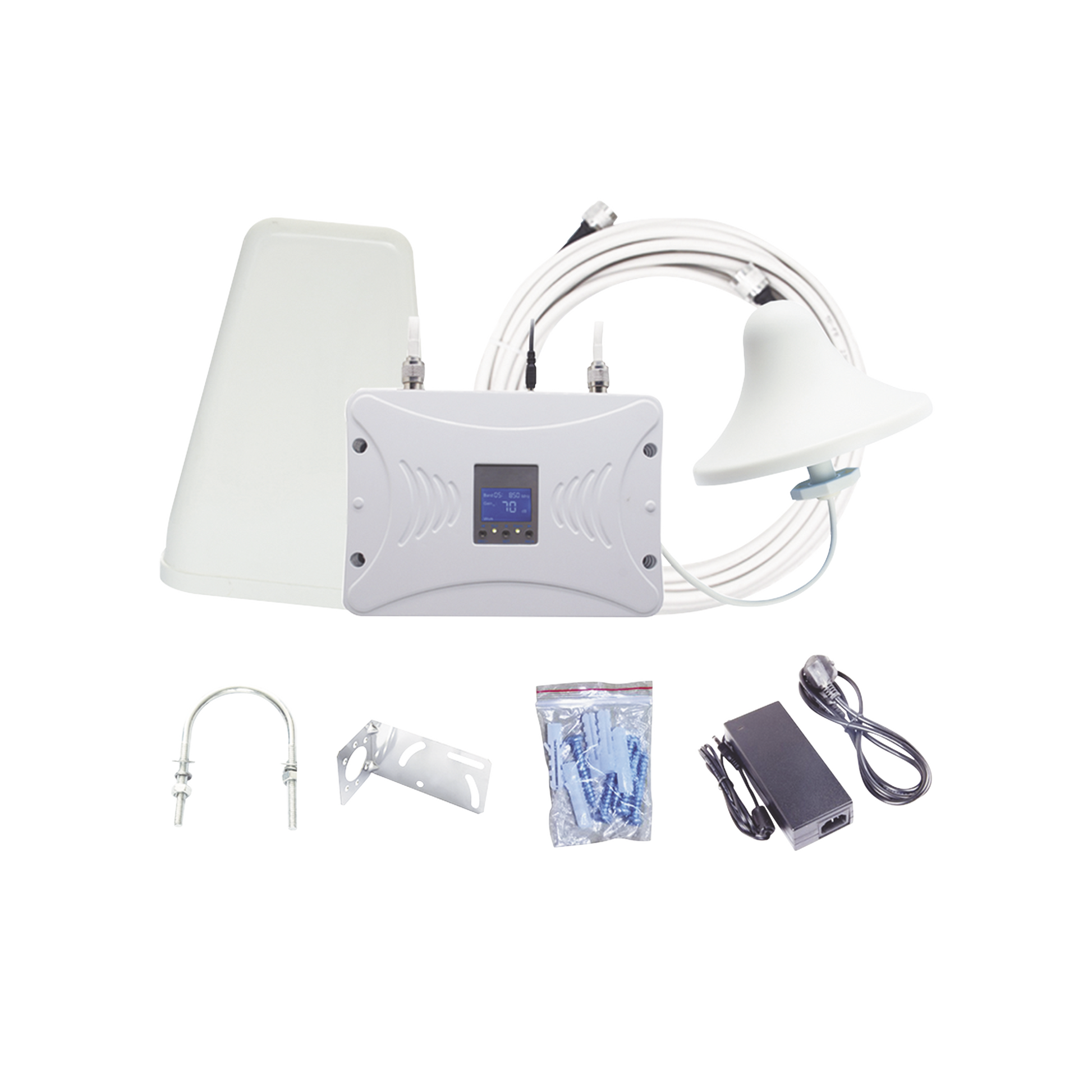 Kit Amplificador de Señal Celular 4G LTE, 3G y Voz. Funciona con Todos los Operadores. Soporta Múltiples Dispositivos y Tecnologías. Hasta 1000 metros cuadrados de Cobertura