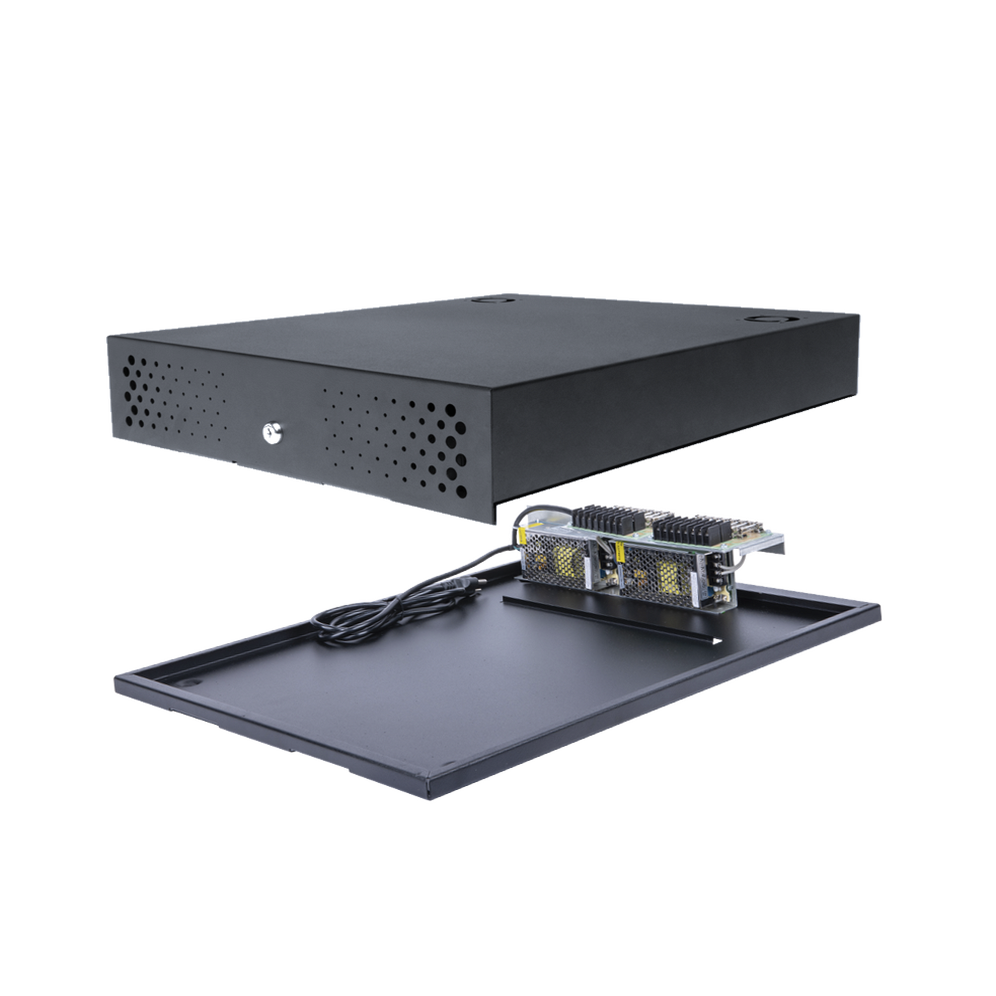 La Única fuente de poder del mercado con espacio para almacenar el DVR/NVR Asegurando la solución más estética del mercado.